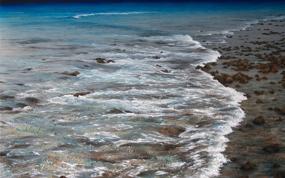 Lisa Lebofsky presents paintings that explore our emotional and physical relationship with nature. She holds her BFA in metals from SUNY New Paltz, and MFA in painting from New York Academy of Art. Lebofsky finds inspiration by traveling extensively, often to remote parts of the world, in order to immerse herself in different environments and cultures. She seeks out areas around the globe that are particularly susceptible to the impacts of climate change, and meets with local residents to discuss how their community is impacted. Regions visited include Antarctica, Newfoundland and Labrador, Greenland, and The Maldives.